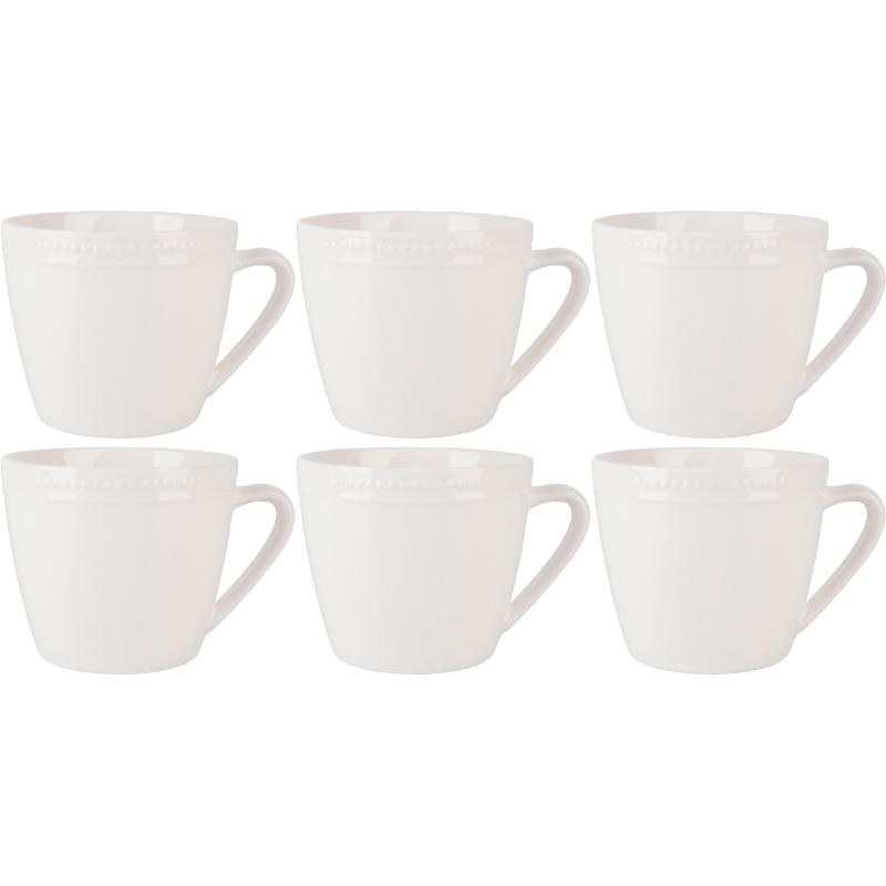 Кружка Nouvelle Home Notele фарфоровая 420 мл (6 штук в упаковке) <br><br>Коллекция Notele — простота и элегантность в вашем доме каждый день. Коллекция представлена в двух дизайнах из высококачественного фарфора. Простые формы подчёркиваются графическим декором, придающий предметам интересный вид. Коллекция Notele будет бесподобно смотреться при ежедневном использовании и отлично сочетается с другими коллекциями от Nouvelle home. Рекомендации по уходу: можно использовать в микроволновой печи и мыть в посудомоечной машине.<br>Комплектация: кружка — 6 шт. <br>Размер штуки: 13×10×9 см. <br>Размер товара в упаковке: 32×32×10 см. <br>Материал: фарфор. <br>Рельефная поверхность. <br>Кружка из фарфора 420 мл может использоваться для чая и кофе, молока и компота, холодных и горячих напитков. Может использоваться как: чайная чашка, кофейная чашка. <br><br>Внимание! Товар поставляется в транспортном коробе. <br><br>Внимание! Товар поставляется без индивидуальной упаковки.