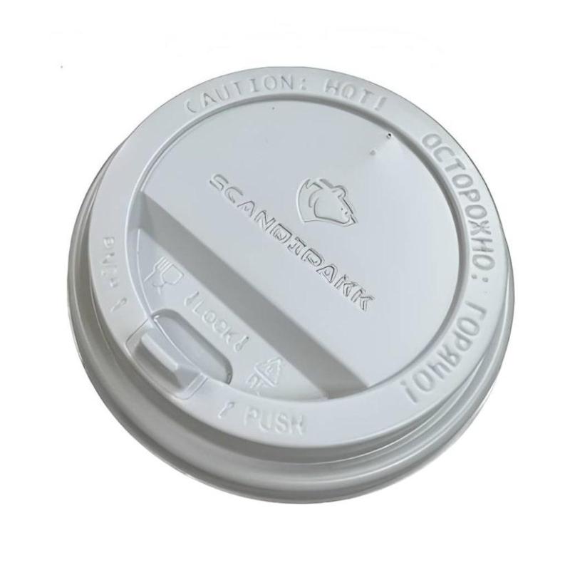 Крышка пластиковая с носиком для бумажных стаканов, цвет белый, диаметр 80 мм, 1000 штук в упаковке.<BR>Решение для услуги «навынос». Плотное прилегание крышки к стакану. Дополнительный комфорт благодаря наличию «носика». Совместимы с бумажными стаканами под горячие напитки Scandipakk с диаметром 80 мм.<BR>Материал: полистирол (ПС).<BR>Максимальная температура воды 75°C.<BR>