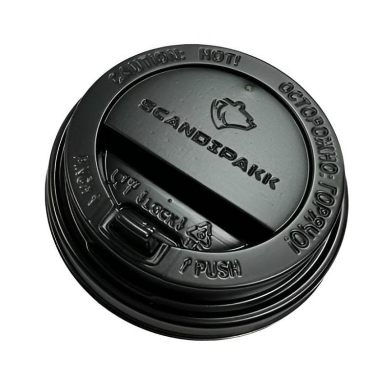 Крышка пластиковая с носиком для бумажных стаканов, цвет черный, диаметр 80 мм, 1000 штук в упаковке.<BR>Решение для услуги «навынос». Плотное прилегание крышки к стакану. Дополнительный комфорт благодаря наличию «носика». Совместимы с бумажными стаканами под горячие напитки Scandipakk с диаметром 80 мм.<BR>Материал: полистирол (ПС).<BR>Максимальная температура воды 75°C.<BR>