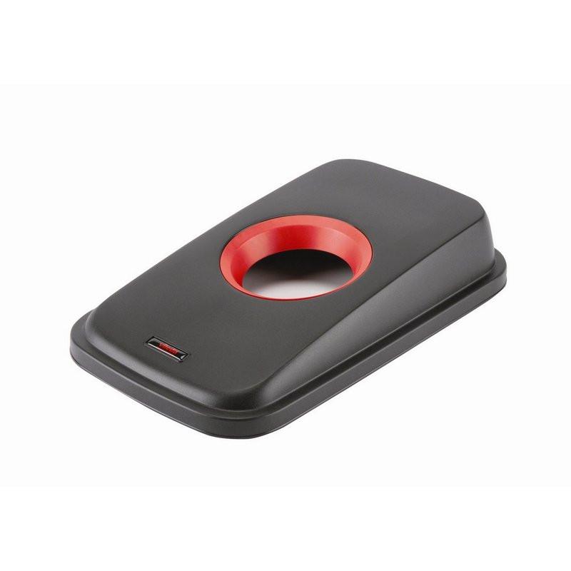 <p>Особенности и преимущества: — подходит для контейнеров ГЕО 55 и 70 л.; — гладкая поверхность для легкой очистки; — скрывает пакет для мусора; — имеет отверстие для бутылок; — также крышка доступна в цветах: черный/желтый, черный/зеленый; — также доступны крышки с узким отверстием для бумаги и с ручкой. Высота: 9 см Размер: 49×29 см Материал крышки — полипропилен, вставка — ударопрочный технический термопласт (АБС). Допустимый температурный диапазон эксплуатации: от -15 до 130 °C. Цвет: черный/красный. Вес: 420 г. Для производства контейнеров ГЕО используется инновационная технология комбинированных материалов, которая позволяет сочетать износостойкость и гибкость пластика с эстетическими свойствами нержавеющей стали. В результате контейнеры не подвергаются коррозии, на их поверхности не остаются отпечатки пальцев и вмятины, а благодаря инновационному дизайну они вписываются в самые современные интерьеры. Большой выбор крышек с цветовой кодировкой отвечает актуальным требованиям по раздельному сбору отходов.</p><br><br>Внимание: в характеристике «Объем рекомендуемого мешка» указан минимальный объем мешка, который подойдет для изделия. Рекомендуется приобретать мешки указанного, либо большего объема.
