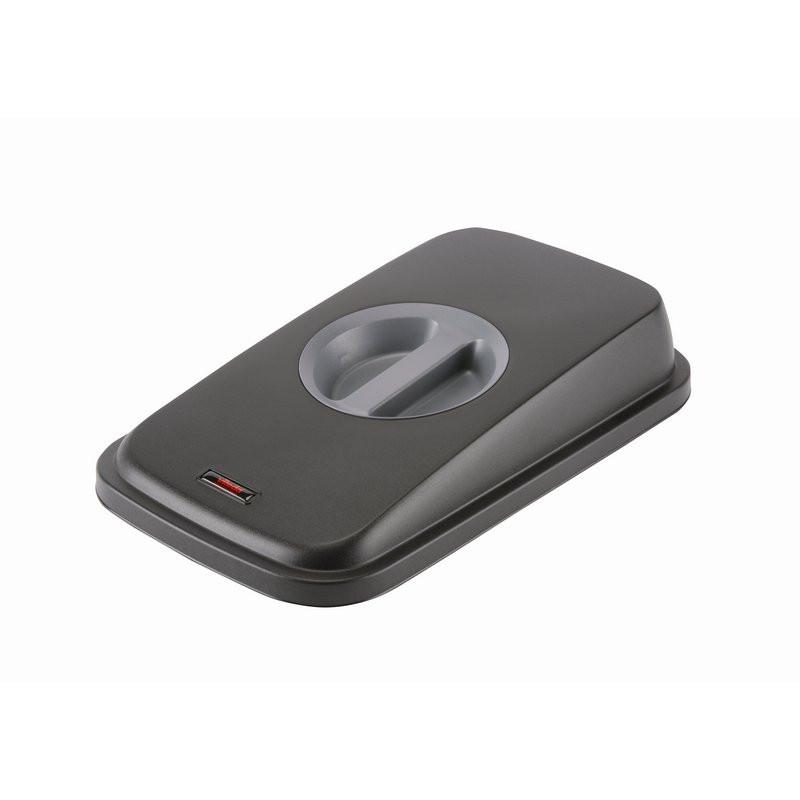 Крышка для урны Vileda Professional Гео с ручкой пластик чёрный/серый (арт. производителя 137730)<br><br>Для производства контейнеров ГЕО используется инновационная технология комбинированных материалов, которая позволяет сочетать износостойкость и гибкость пластика с эстетическими свойствами нержавеющей стали. В результате контейнеры не подвергаются коррозии, на их поверхности не остаются отпечатки пальцев и вмятины, а благодаря инновационному дизайну они вписываются в самые современные интерьеры. Большой выбор крышек с цветовой кодировкой отвечает актуальным требованиям по раздельному сбору отходов.<br><br>Особенности и преимущества:<br>— подходит для контейнеров ГЕО 55 и 70 л;<br>— гладкая поверхность для лёгкой очистки;<br>— встроенная ручка;<br>— скрывает пакет для мусора;<br>— также доступны крышки с узким отверстием для бумаги и с круглым отверстием для бутылок.<br><br>Материал крышки — полипропилен, вставка — ударопрочный технический термопласт (АБС).<br>Допустимый температурный диапазон эксплуатации:</b> от −15 до 130 °C.<br><br><b>Высота:</b> 9 см.<br><b>Размер:</b> 49×29 см.<br><b>Цвет:</b> чёрный/серый.<br><b>Вес:</b> 570 г.