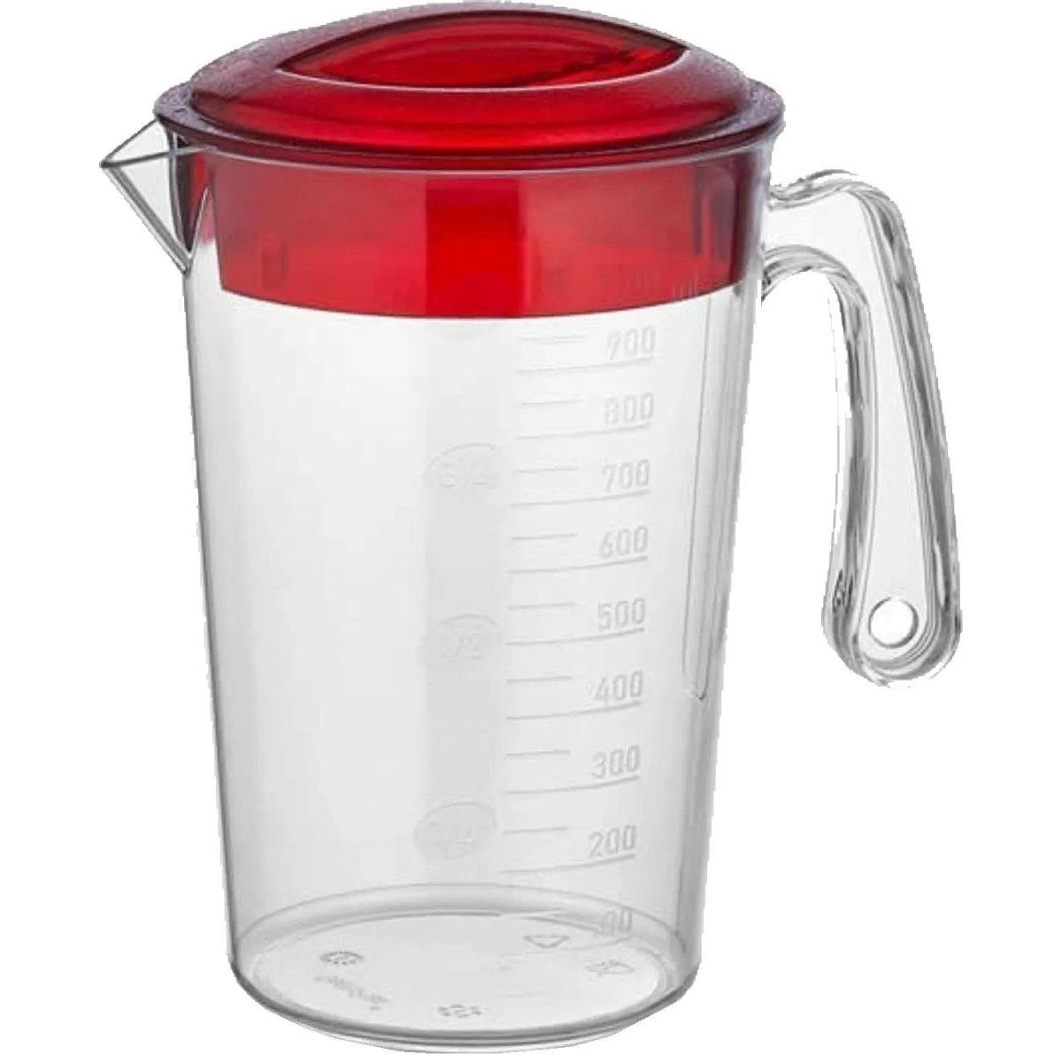 Кувшин Gastroplast объёмом 1 л выполнен из пластика и предназначен для измерения жидкостей. Он имеет прозрачный цвет с красными акцентами и оснащён крышкой, что предотвращает проливание содержимого. Кувшин можно мыть в посудомоечной машине, что облегчает его уход.