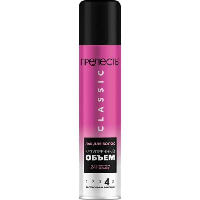 Лак для волос Прелесть Classic экстрасильная фиксация 200 мл<br><br>Классические средства для стайлинга с самыми востребованными стайлинговыми эффектами: 100% фиксации и 100% объёма. Лак для волос фиксирует причёску, обеспечивает естественную подвижность и эластичность волос.<br>Преимущества средства для укладки волос:<br>— Надёжная фиксация без склеивания на 24 часа.<br>— Экстракт женьшеня укрепляет структуру волос и придаёт им блеск.<br>— Легко удаляется при расчёсывании.<br>Состав: Alcoholdenat (ethanol) 51,62%, Isobutane, AcrylatesCopolymer, AminomethylPropanol, Propane, Butane, Marissal, EthylhexylSalicylate, Parfum, HexylCinnamal, Limonene, Linalool, Citronellol, Geraniol,Alpha-IsomethylIonone.<br>Объём: 200 мл.
