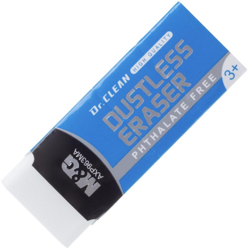 Ластик M&G прямоугольной формы выполнен из термопластичного каучука. Цвет: белый. Размер: 53×20×11 мм. Предназначен для удаления с бумаги надписей, сделанных чернографитными карандашами. Мягко и быстро удаляет надписи.<br>Ластик упакован в картонный держатель, предотвращающий растрескивание и загрязнение корпуса.