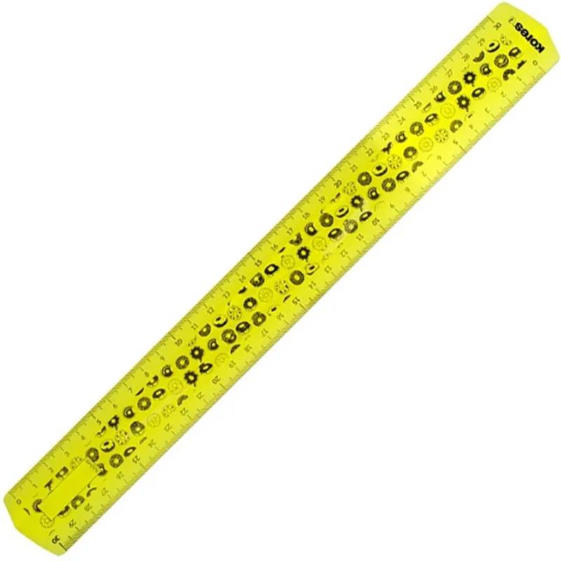 Линейка Kores 30 см пластиковая в ассортименте повышенной гибкости <br><br>Линейка является незаменимым помощником при чертежных работах в образовательных учреждениях и офисах, а также дома.<br>Линейка Kores оригинальная супергибкая 30 см. <br>Выполнена из неломающегося гнущегося пластика.<br>Можно сгибать и скручивать неограниченное количество раз.<br>Можно использовать как антистресс! <br>Двойная высококачественная градуировка: деления наносятся с использованием специальных чернил для оптимальной стойкости.<br>Легко читать: наглядные индикаторы каждые 5 см. <br>В ассортименте 4 цвета с разными рисунками.<br><br>Внимание! Товар поставляется в нескольких вариантах цвета/дизайна (без возможности выбора).