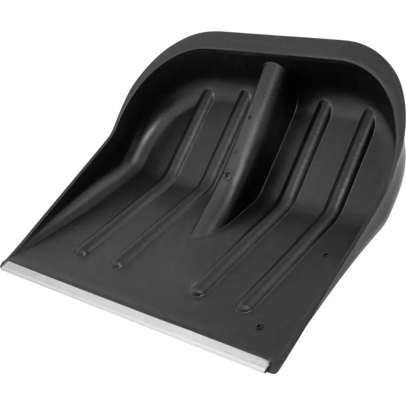 Лопата для уборки снега Сибртех пластик 41.5×46.5 см без черенка (морозостойкая, с рёбрами жёсткости) <br><br>Лопата предназначена для уборки снега. Поможет расчистить тротуар, садовую дорожку, площадку перед подъездом или гаражом. Глубокий ковш с высокими бортиками захватывает много снега, что ускоряет и упрощает уборку. Преимущества изделия: прочность — ковш усилен рёбрами жёсткости, поэтому не сломается при интенсивном использовании. Морозостойкость — лопата из ударопрочного полипропилена выдерживает температуру до −50 градусов. Эффективность и долговечность — алюминиевая накладка на кромке ковша позволяет справляться со слежавшимся снегом и настом, а также предотвращает преждевременный износ инструмента. Размер ковша: 41.5×46.5 см. Общая длина: 46.5 см. Поставляется без упаковки. <br><br>Рукоятка/черенок в комплект поставки не входит и приобретается отдельно.