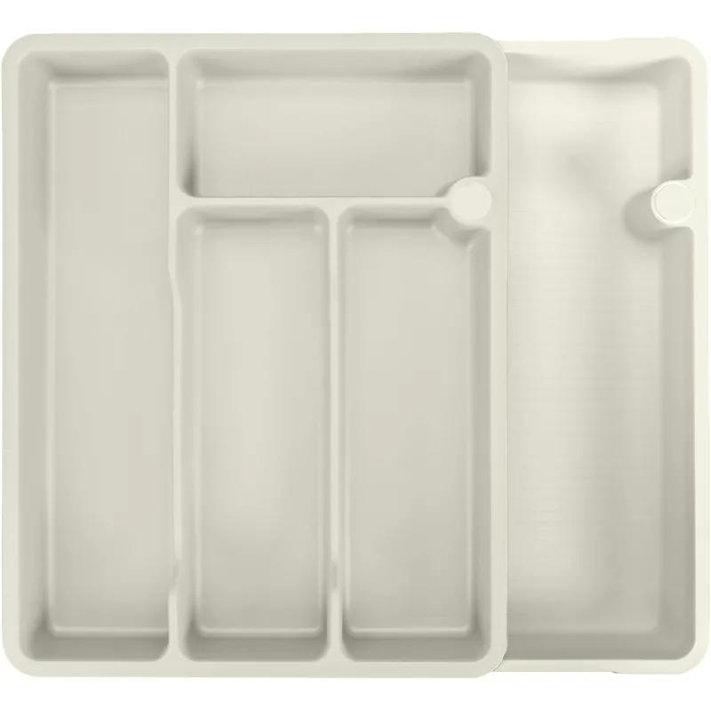 Лоток для столовых приборов Phibo пластиковый 37.3×28.7 см светло-серый <br><br>Раздвижной лоток для столовых приборов позволяет максимально использовать пространство кухонного ящика. Сделан из полипропилена, который легко моется и не впитывает запахи.<br>Размер: 37.3×28.7×4.9 см.