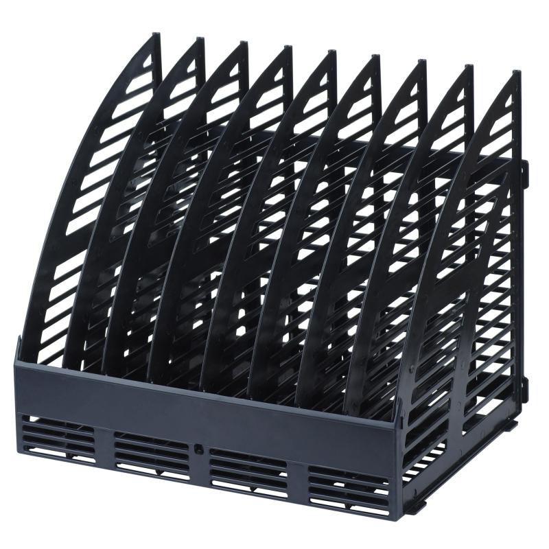 Вертикальный накопитель Attache выполнен из пластика черного цвета. Минималистичный дизайн лотка создаст на Вашем рабочем месте ощущение легкости. Не занимает много места на рабочем столе. Позволяет удобно хранить документы и печатную продукцию формата А4. Имеет 8 отделений. Размеры изделия (ДxШxВ): 235×320×285 мм. Внутренняя ширина: 320 мм, внешняя ширина по выступающим деталям: 335 мм. Вес: 860 г. Конструкция требует самостоятельной сборки, что позволяет регулировать ширину отделения кратно 40 мм. Съемный передний бортик. Возможно крепление на вертикальных плоскостях. Обладает устойчивой конструкцией, благодаря которой является удобным для хранения большого объема документов. Этикетки для маркировки в комплект поставки не входят