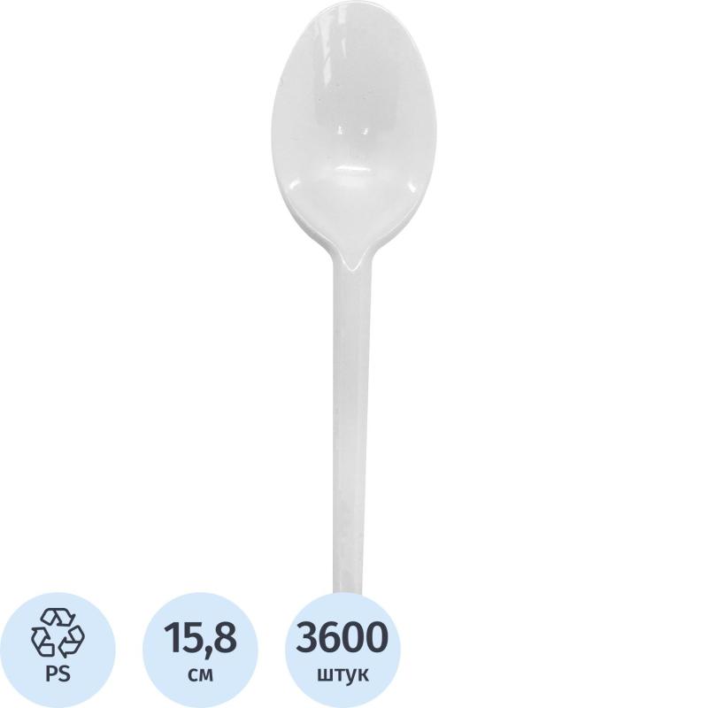 Ложка одноразовая столовая пластиковая Комус белая 158 мм (3600 штук в коробке). <br>Ложки изготовлены из высококачественного полистирола, безопасного для здоровья человека. Легкие и прочные, без острых краев и заусенцев. Подходят для использования как на предприятих общепита, так и в домашних условиях. <br><br>Товар произведен под контролем «Комус». Мы специально позаботились о Партнерах, которые превыше всего ценят качество и комфорт, и разработали линейку Одноразовой посуды самых востребованных размеров для обеспечения быстрого питания в офисе, образовательных и производственных учреждениях, сферы гостеприимства и общественного питания и многих других. Производство расположено в России, что гарантирует постоянный контроль качества и оптимальные цены. <br><br>Внимание! Товар поставляется в транспортном коробе.