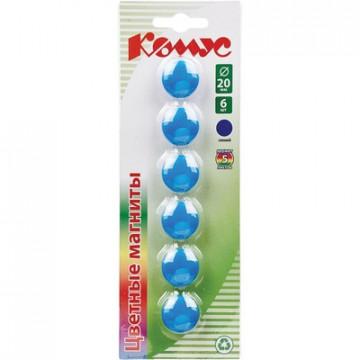 Магнитный держатель для досок синий Комус (диаметр 20 мм, 6 штук в упаковке)<br><br>Магнитный держатель для досок предназначен для фиксирования информации на металлических поверхностях магнитно-маркерных досок, флипчартов или витрин. Диаметр магнитного держателя 20 мм. Диаметр внутреннего магнита 11 мм. Цвет синий. В упаковке поставляется 6 держателей магнитных.<br><br>В рамках обновления дизайна упаковки с сохранением всех потребительских характеристик товара, допускается поставка данной продукции в двух вариантах дизайна упаковки.
