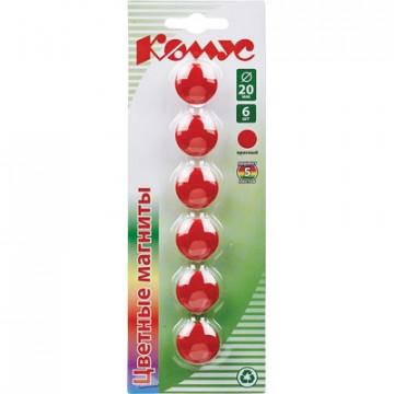 Магнитный держатель для досок красный Комус (диаметр 20 мм, 6 штук в упаковке)<br><br>Магнитный держатель для досок предназначен для фиксирования информации на металлических поверхностях магнитно-маркерных досок, флипчартов или витрин. Диаметр 20 мм. Цвет красный. 6 штук в упаковке.<br><br>В рамках обновления дизайна упаковки с сохранением всех потребительских характеристик товара, допускается поставка данной продукции в двух вариантах дизайна упаковки.