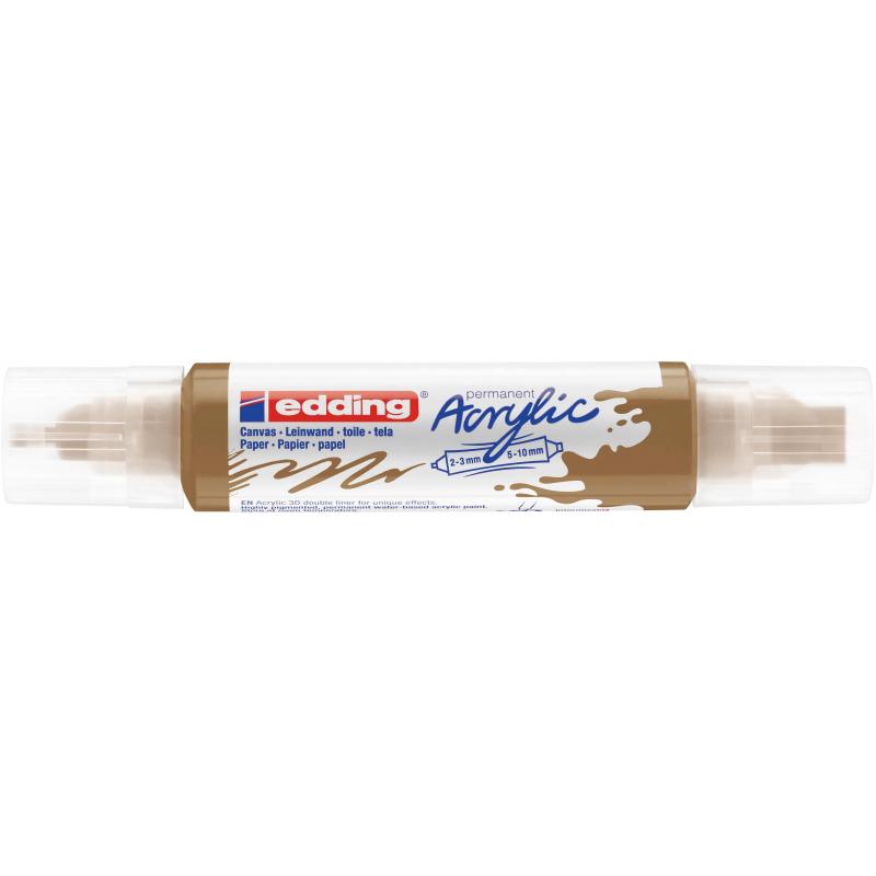 Маркер акриловый Edding 3D 5400/924 двухсторонний золотистый (толщина линии 2-10 мм)<br> <br> Двусторонний 3D-маркер позволяет создавать настоящие объёмные рисунки. Слегка надавите на корпус — и волшебство начинается! Сильнее нажим — объёмнее линия. Двусторонняя трубка имеет два сопла с шириной хода 2-3 мм и 5-10 мм. 3D-маркер Edding 5400 — яркий представитель акриловой линейки Edding. Акриловые маркеры Edding — целый набор инструментов для живописи. Чернила содержат высокопигментированную светостойкую и перманентную акриловую краску на водной основе. Созданы для рисования как на бумаге или картоне, так и на холсте. Вы получите эффект настоящих красок, но в более удобной форме маркера. Цвет: золотой.