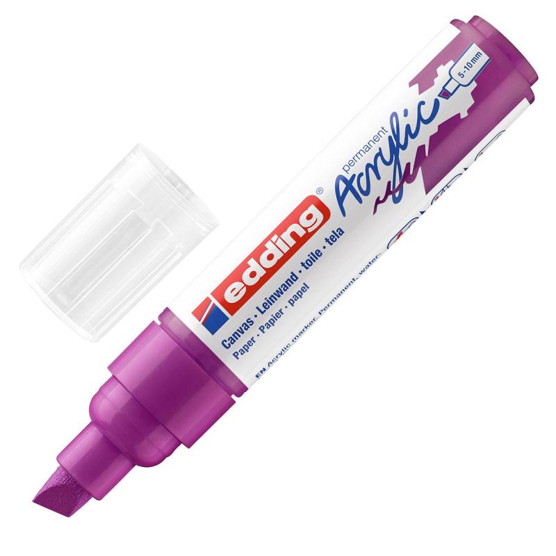 Маркер акриловый Edding 5000/910 фиолетовый (толщина линии 5-10 мм)<br> <br> Акриловый маркер Edding 5000 — яркий представитель акриловой линейки Edding. Акриловые маркеры Edding — целый набор инструментов для живописи. Чернила содержат высокопигментированную светостойкую и перманентную акриловую краску на водной основе. Созданы для рисования как на бумаге или картоне, так и на холсте. Вы получите эффект настоящих красок, но в более удобной форме маркера. Благодаря своему скошенному наконечнику с шириной штриха в 5-10 мм он позволит вам наносить широкие линии — вы можете быстро закрасить обширную площадь, создавая эффект нанесения краски кистью. Цвет: ягодный.