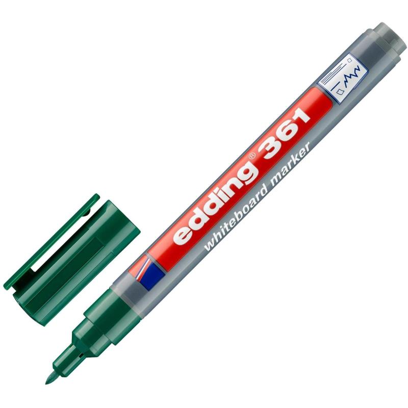 Маркер для досок Edding 361 с технологией «cap off». Тонкая линия — 1 мм.<BR>Данные маркеры можно использовать на магнитно маркерных досках, а так же на флипчартах.<BR>Круглый наконечник.<BR>Пластиковый корпус.<BR>Цвет: черный.<BR>Стирается сухой губкой<BR>Производство — Германия.<BR>Чернила на спиртовой основе.<BR><BR>Внимание! Маркеры для досок необходимо хранить в горизонтальном положении или фетром вниз.