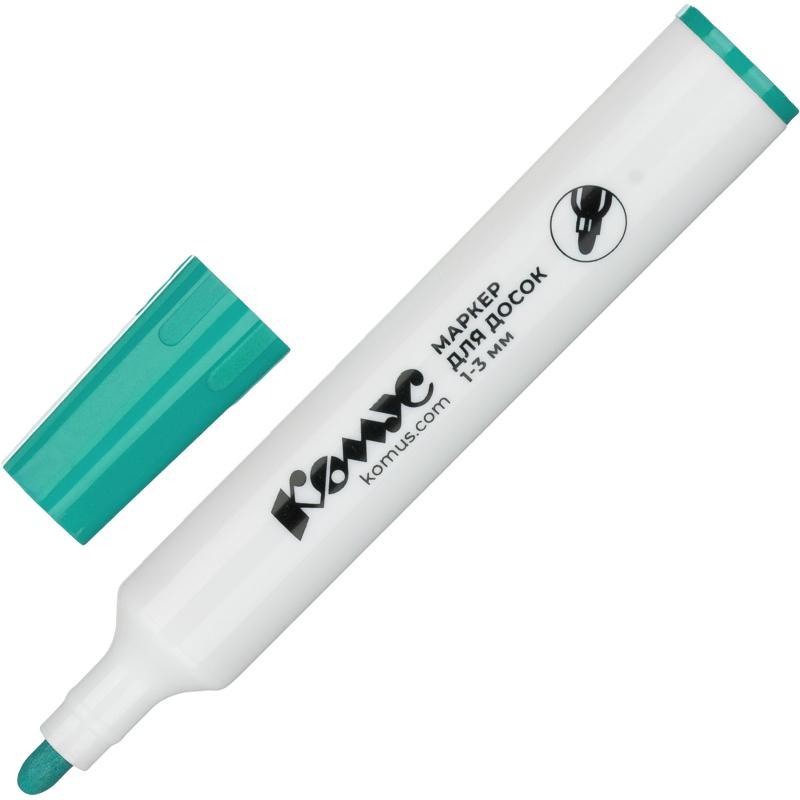 Маркер для досок Комус в прочном пластиковом корпусе. Чернила на спиртовой основе, не содержат ксилол и толуол. Идеально подходит для надписей на белых досках с магнитно—маркерной поверхностью. Надписи можно легко стереть сухой губкой. Прочный акриловый наконечник круглой формы позволяет провести линию толщиной от 1 до 3 мм. Цвет — зеленый. Длина линии письма — 300 м. Изделие не перезаправляется.<BR><BR>Внимание! Маркеры для досок необходимо хранить в горизонтальном положении или фетром вниз.