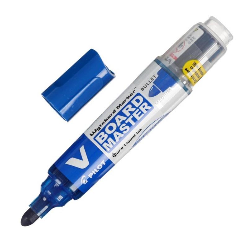 Маркер для досок PILOT WBMA-<nobr>VBM-M-BG</nobr>. Маркер для белых эмалевых досок. Скошенный наконечник. Пластиковый корпус. Толщина линии письма — 1–3 мм. Цвет: синий. Толщина корпуса маркера — 3 см. Продукт серии Begreen, на 91% изготовлен из вторично переработанного пластика. Система визуального контроля наличия чернил. Жидкие чернила на спиртовой основе. Нетоксичны, не содержат ксилен.<BR><BR>Внимание! Маркеры для досок необходимо хранить в горизонтальном положении или фетром вниз.