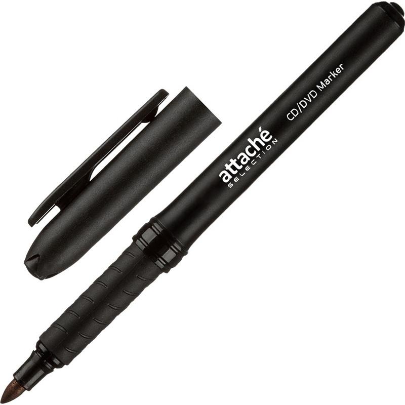 Маркер для CD Attache Selection в пластиковом корпусе применяется для надписей на CD, CD-R и DVD-дисках. Не повреждает информацию, хранящуюся на дисках. Удобная резиновая манжетка снижает напряжение руки во время работы. Круглый наконечник обеспечивает толщину линии письма — 1 мм. Цвет чернил — черный.