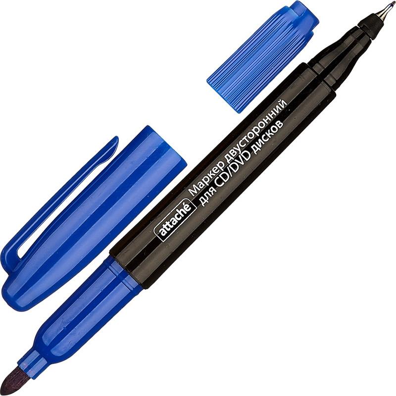 Двусторонний маркер для CD выполнен в пластиковом корпусе и снабжен круглым наконечником, применяется для надписей на CD, CD-R и DVD-дисках. Не повреждает информацию, хранящуюся на дисках. Толщина линии письма — 0,7 и 1 мм. Чернила синего цвета.