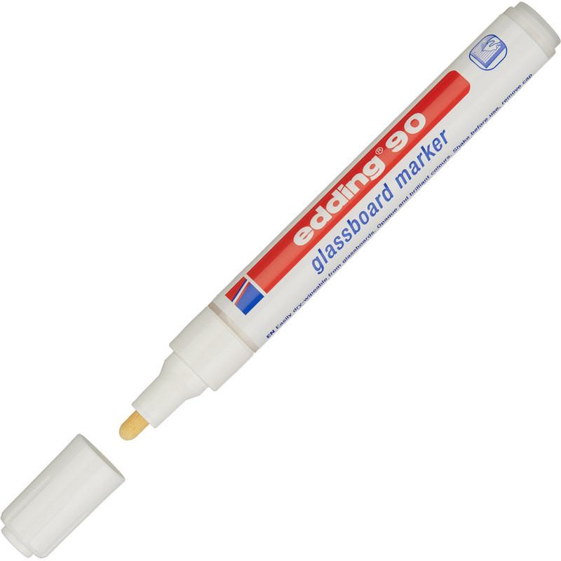 <p>Маркер для стеклянных досок в пластиковом корпусе. Конусообразный наконечник обеспечивает толщину линии от 2 до 3 мм. Цвет — белый.</p> <p>Особенности:<br /> — Для всех окрашенных стеклянных досок и большинства стеклянных поверхностей<br /> — Блестящие светостойкие чернила ложатся плотным слоем<br /> — Легко удалить сухим способом даже спустя несколько недель<br /> — С системой подкачки чернил.<br><br>Инструкция по применению маркера:<br>1. Перед использованием тщательно встряхните маркер с закрытым колпачком.<br>2. Снимите колпачок, прижмите наконечник к поверхности и надавите, удерживая до появления краски.<br>3. Убедитесь, что вытекает нужный цвет, прежде чем начать рисовать или писать.<br>Предостережение: плотно закрывайте колпачок после использования и храните маркер вдали от огня и прямых солнечных лучей.<br /> Чернила на спиртовой основе.</p>