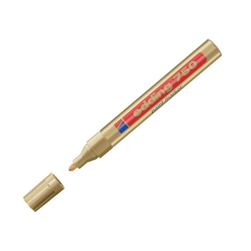 Маркер промышленный лаковый Edding E-750/53 золотистый 2-4 мм<br><br>Промышленный лаковый маркер на основе нитрокраски идеально подходит для нанесения ярких и стойких надписей и рисунков на различных материалах, таких как стекло, пластик, дерево, металл, резина, камень, кирпич, картон, кожа и бетон. Этот маркер особенно полезен для промышленной маркировки, а также для оформления и декоративных работ, таких как витражи и роспись по дереву и керамике.<br><br>Маркер оснащён прочным алюминиевым корпусом и упрочнённым круглым наконечником диаметром 2-4 мм, что позволяет наносить чёткие и плотные линии на тёмных и светлых поверхностях. Специальные компоненты в составе чернил растворяют масляную плёнку, позволяя маркеру работать даже на загрязнённых, пыльных или жирных поверхностях. Высококонцентрированные пигменты обеспечивают равномерное нанесение краски, которая быстро сохнет и обладает водостойкостью, термостойкостью, а также устойчивостью к механическому истиранию, кислотам и растворителям.<br><br>Температура маркировки: от −80°С до +400°С. Температура поверхности: от — 15°С до + 95°С. Поток чернил регулируется системой Cap-off, что предотвращает их излишнее вытекание.<br><br>Инструкция по применению проста: перед использованием необходимо встряхнуть маркер с закрытым колпачком, затем снять колпачок, прижать наконечник к поверхности, надавить и удерживать до тех пор, пока краска не поступит на пишущий узел. После использования маркер следует плотно закрыть.