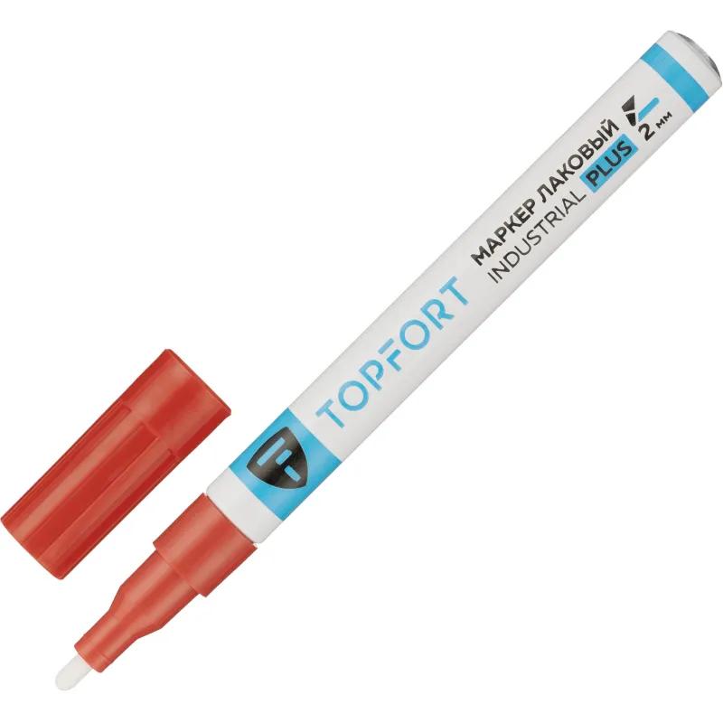 Маркер промышленный лаковый TOPFORT Industrial Plus для агрессивной среды красный 1-2 мм (2096983)<br><br>Маркер промышленный TOPFORT Industrial для универсальной маркировки красный (2 мм) предназначен для промышленной непрозрачной маркировки металла, стекла, пластика, дерева, резины, камня, картона, кирпича, текстиля, кожи (материал), бумаги, бетона. Краска содержит высококонцентрированный пигмент, хорошо ложится на гладкие и шероховатые поверхности. Может применяться для письма на жирных, пыльных, грязных поверхностях. После высыхания лаковые чернила устойчивы к воздействию света, атмосферных осадков, смазочных материалов, механическому истиранию. Создаёт стойкую линию толщиной 2 мм. Длина маркера — 143 мм. Цвет чернил : красный.<br>Особенности:<br>— Краска на усиленной масляной основе (Италия).<br>— Устойчивый к износу усиленный акриловый круглый наконечник (Япония).<br>— Толщина линии 2 мм.<br>— Материал корпуса — алюминий.<br>— Температурный режим использования : от 0 до +40 °С.<br>— Температурный режим хранения: от 0 до +60 °С.<br>— Температурная устойчивость надписи: от −60 до +350 °С.<br><br>Инструкция по применению:<br>1. Перед использованием интенсивно встряхните маркер с закрытым колпачком.<br>2. Снимите колпачок, прижмите наконечник к поверхности, надавите до упора и удерживайте пока не проступит краска.<br>3. Применять после того как убедитесь, что наконечник полностью пропитан краской исходного цвета. Избегайте чрезмерного давления на наконечник при дальнейшем использовании.<br><br>Предостережения: плотно закрывайте колпачок после применения, держать маркер вдали от источников тепла и воспламенения.
