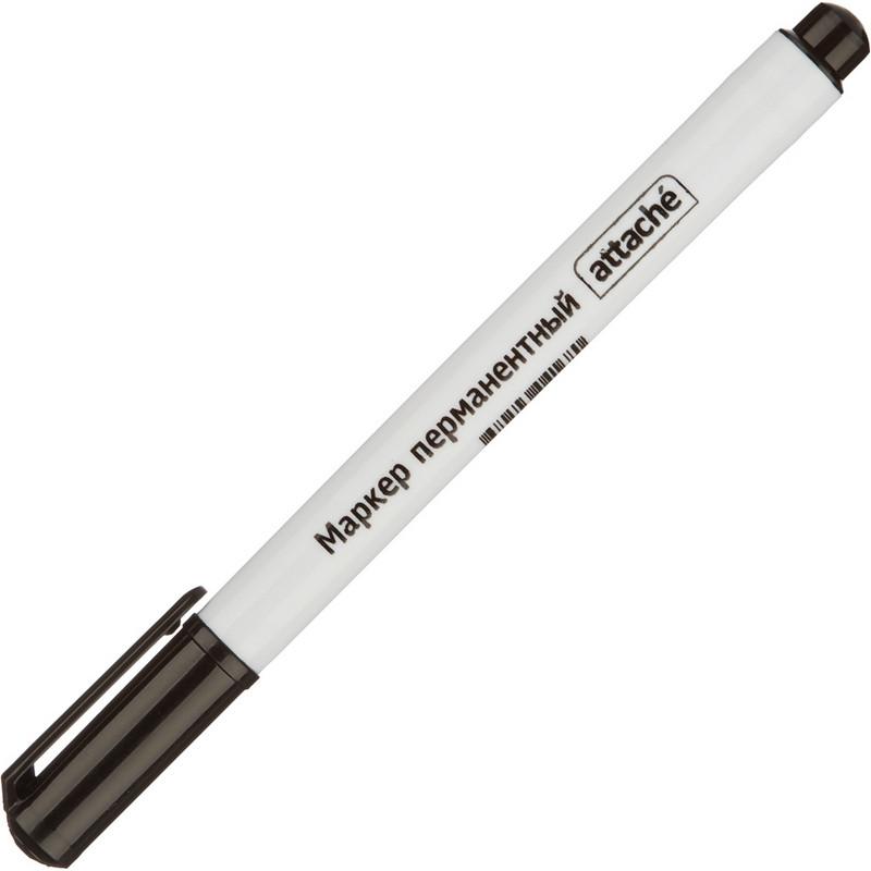 Особая нестираемая основа перманентного маркера Attache черного цвета обеспечивает такие качества, как стойкость к воздействию воды, ультрафиолета, низких и высоких температур. Можно маркировать, среди прочего, пластмассовые, деревянные, металлические, стеклянные или картонные предметы. Цвет колпачка соответствует цвету чернил. Игольчатый наконечник обеспечивает экономный расход чернил. Изделие не перезаправляется. Плотно закрывается колпачком, что предотвращает высыхание наконечника и чернил. Толщина линии письма — 0,5 мм, благодаря чему можно создавать тонкие, аккуратные линии. Спиртовая основа быстросохнущих чернил. Круглая форма корпуса из прочного пластика, колпачок снабжен клипом. Перманентный маркер Attache должен быть всегда под рукой! <b>Внимание! Сразу после использования плотно закрывайте колпачком (до щелчка).</b>