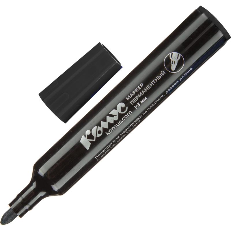 <p>Маркер перманентный Комус в прочном пластиковом корпусе. Нестираемые светостойкие чернила на спиртовой основе, не содержат ксилол и толуол. Идеально подходит для надписей на металле, пластике, дереве и картоне, а также резине, стекле. Прочный акриловый наконечник круглой формы позволяет провести линию толщиной от 1 до 3 мм. Цвет — черный. Длина линии письма — 300 м.</p>