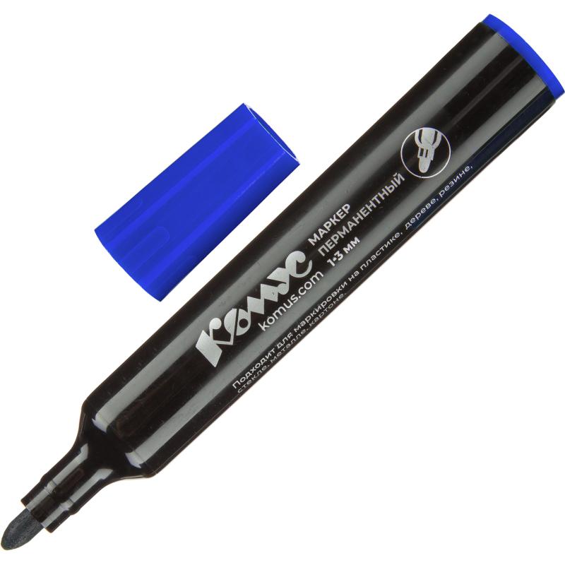 <p>Маркер перманентный Комус в прочном пластиковом корпусе. Нестираемые светостойкие чернила на спиртовой основе, не содержат ксилол и толуол. Идеально подходит для надписей на металле, пластике, дереве и картоне, а также резине, стекле. Прочный акриловый наконечник круглой формы позволяет провести линию толщиной от 1 до 3 мм. Цвет — синий. Длина линии письма — 300 м.</p>