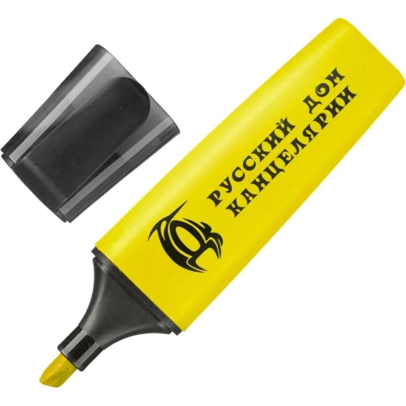 Текстовыделитель жёлтый скошенный наконечник (толщина линии 1-5 мм)<br><br>Текстовыделитель «Русский Дом Канцелярии» жёлтый — прекрасный выбор для тех, кто любит использовать маркеры для выделения важной информации. Этот инструмент поможет акцентировать внимание на ключевых моментах в документах и текстах, улучшая запоминание важной информации.<br>Благодаря экономичному расходу чернил, маркер прослужит длительное время. Светостойкие чернила на водной основе не теряют яркость даже под воздействием солнечных лучей и не размазываются. Они также устойчивы к промоканию, что гарантирует сохранность текста на бумаге.<br>Маркер оснащён жёлтыми чернилами на водной основе, которые не имеют запаха. Корпус соответствует цвету чернил, что делает его легко узнаваемым.<br>Удобная плоская форма корпуса обеспечивает комфортное использование, а скошенный наконечник позволяет регулировать толщину линии от 1 до 5 мм. Это особенно удобно при работе с мелким шрифтом или таблицами.