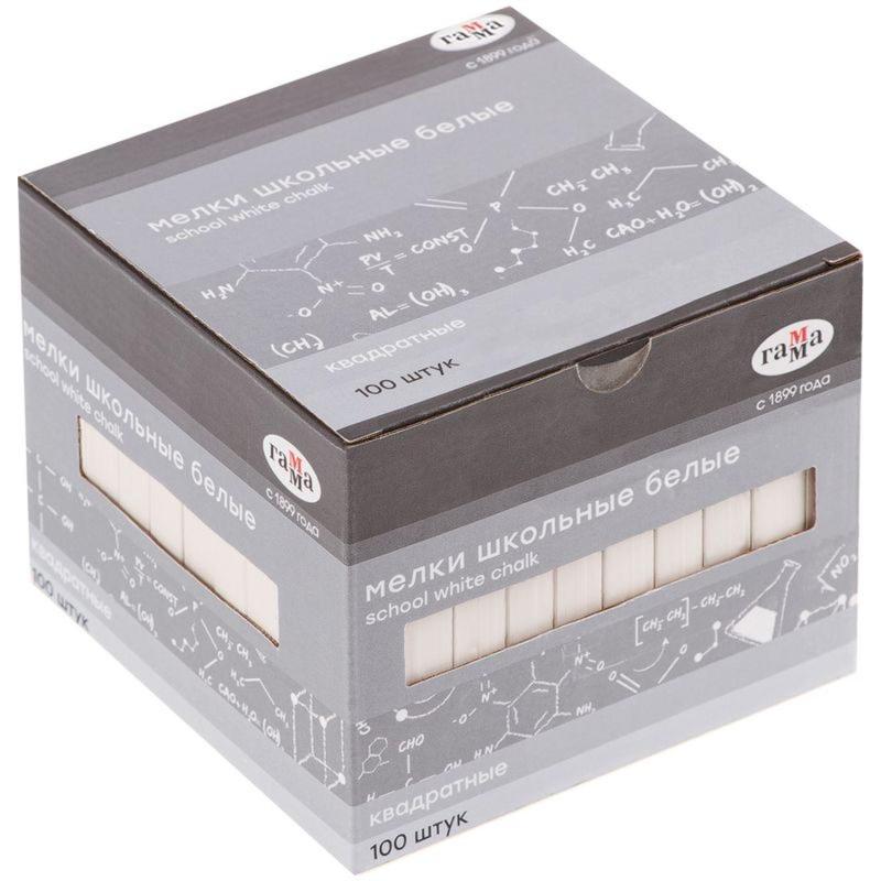 Мел школьный белый Гамма (100 штук в упаковке)<br> <br> Мягкий школьный мел предназначен для рисования и письма на шероховатых поверхностях, включая школьные доски и асфальт. Благодаря эргономичной форме, он удобно ложится в руку и позволяет наносить ровные, аккуратные линии.<br> <br> Изготовлен из 95% чистого мела, не содержит гипс и другие добавки, что делает его безопасным и экологичным. Не царапает поверхность, обеспечивая мягкое и комфортное письмо.<br> <br> В комплект входит 100 белых мелков длиной 80 мм и шириной 10 мм. Упакован в картонную коробку, удобную для хранения и транспортировки.