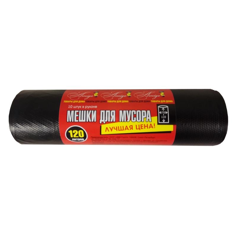 Мешки для мусора 120 л черные (ПНД, 14 мкм).<br> Применяются для хранения и транспортировки строительного и производственного мусора, бытовых и продуктовых отходов. Данные пакеты подходят для уборки придомовой территории ЖКХ, сбора листьев и растительного мусора при сезонной уборке улиц, бульваров, скверов, парков. Изготовлены из полиэтилена низкого давления. Не являются ароматизированными и биоразлагаемыми.<br> Упакованы по 10 штук в рулоне.