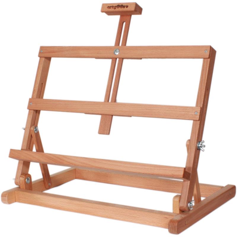 Мольберт настольный, каркасный, серии ARG-14 компании «Туюкан».<br>Небольшой настольный мольберт с подъемной штангой. Предназначен для работы с маленькими холстами и для демонстрации картин, фотографий, рисунков и багетов. <br>Мольберт изготовлен из высококачественного бука, который покрыт специальным защитным составом.<br><br>Максимальная высота холста на подрамнике или планшета — 50 см.<br>Выдерживает вес до 3 кг.<br>Дополнительные характеристики:<br>— размер основания: 47.5×33 см;<br>— особенности: мольберт с подъемной штангой и регулируемым наклоном.