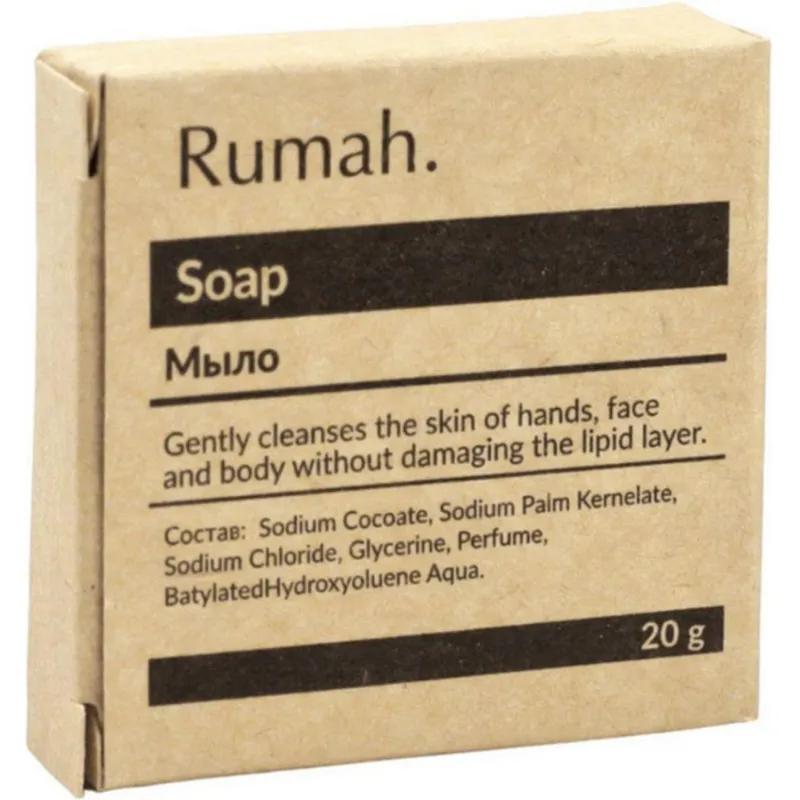 <b>Мыло туалетное Rumah 20 г картон (500 штук в упаковке).</b> <br>Круглое мыло весом 20 граммов. Деликатно очищает кожу. Пригодится в отеле или гостинице. Мыло обладает классическим ароматом. <br><b>Состав:</b> натриевые соли жирных кислот растительных и животных жиров и кокосового масла, вода, глицерин, хлорид натрия, парфюмерная композиция, тетранатриевая соль ЭДТА, диоксид титана, тинопал. <br><b>Срок годности:</b> 24 месяцев. <br><b>Количество в упаковке:</b> поставляется упаковками по 500 картонов. <br>Упаковка — коробка из крафт-картона. <br><br>