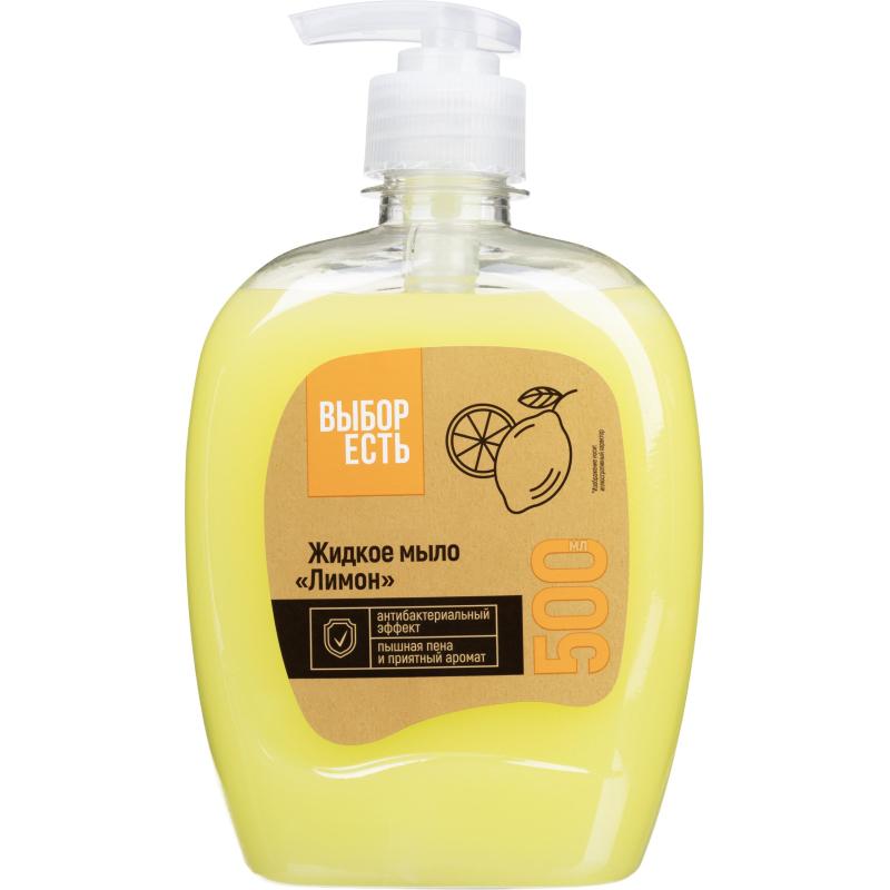 Мыло жидкое Выбор есть Лимон 500 мл<br><br>Назначение: очищает и смягчает кожу. Продукция косметическая гигиеническая моющая по уходу за кожей рук.<br>Состав: Aqua, Sodium Chloride, Sodium Laureth Sulfate, Cocamide DEA, Styrene/Acrylates Copolymer, Parfum, Triclosan, DMDM Hydantoin, Lemonen, Methylchloroisothiazolinone, Methylisothiazolinone, C.I. 19140.<br>Область применения: использовать по назначению — в быту, кафе, ресторанах, комбинатах общественного питания, лечебно-профилактических, учебных и детских учреждениях.<br>Меры предосторожности:<br>Использовать только по назначению! Хранить в недоступном для детей месте. При попадании мыла в глаза немедленно промыть их чистой водой.<br>Условия хранения:<br>Хранить вдали от пищевых продуктов, нагревательных и осветительных приборов и прямых солнечных лучей при температуре не ниже +5 °С и не выше +25 °С.<br>Срок годности: 24 месяца.