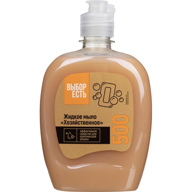 Мыло жидкое хозяйственное Выбор есть 500 мл<br><br>Назначение: эффективное средство для комплексной уборки. Предназначено для мытья рук. Подходит для мытья посуды, кухонной утвари, полов и любых твёрдых моющихся поверхностей, а также ручной стирки.<br>Способ применения:<br>Мытьё рук: небольшое количество мыла нанесите на влажную кожу рук, взбейте пену, вымойте руки и тщательно ополосните их водой. <br>Мытьё посуды и кухонной утвари: нанесите небольшое количество средства на влажную губку, несколько раз сожмите её рукой до образования пены, вымойте посуду или поверхность, затем тщательно ополосните их чистой водой. <br>Мытьё полов и поверхностей: разведите 60 г средства в 10 л воды, вымойте полы или поверхность с помощью тряпки или губки.<br>Ручная стирка: разведите 100 г средства в 10 л воды. Замочите бельё на 1 — 2 часа или стирайте обычным способом. Для сильнозагрязнённого белья и в регионах с высокой жёсткостью воды дозировку средства увеличить в 2 раза.<br>Состав:<br>Вода, сульфоэтоксилат натрия, хлорид натрия, диэтаноламид жирных кислот природного масла, кокамидопропилбетаин, стирол-акрилатный сополимер, парфюмерная композиция, консервант (дмдм гидантоин, метилизотиазолинон, метилхлороизотиазолинон), краситель (Е 102, Е 133, Е 124, Е 110).<br>Меры предосторожности:<br>Осторожно! При попадании в глаза вызывает раздражение! Использовать только по назначению! Хранить в плотно закрытой упаковке, в недоступном для детей месте. При повышенной чувствительности и повреждениях кожи рук избегать длительного контакта с моющим раствором. После работы тщательно вымыть руки. Избегать попадания в глаза. В случае попадания в глаза немедленно промыть их чистой водой. При необходимости обратиться к врачу, по возможности показать упаковку продукта.<br>Условия хранения:<br>Хранить вдали от пищевых продуктов, нагревательных и осветительных приборов и прямых солнечных лучей при температуре не ниже +5 °С и не выше +25 °С.<br>Срок годности: 24 месяца.