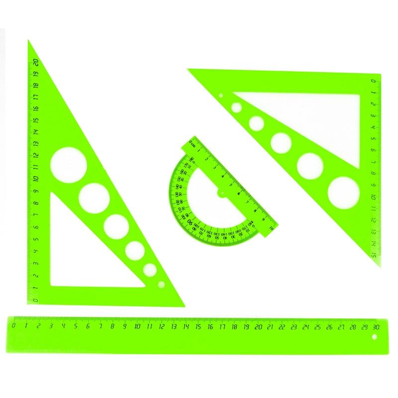Набор чертёжный № 1 School прозрачный (линейка 30 см, транспортир, 2 треугольника)<br /> <br /> Линейка является незаменимым помощником при чертёжных работах в образовательных учреждениях и офисах, а также дома. Линейка № 1 School 30 см. Выполнена из пластика. Деления наносятся с использованием специальных чернил для оптимальной стойкости. Легко читать: наглядные индикаторы. Цвета в ассортименте. В наборе четыре предмета.