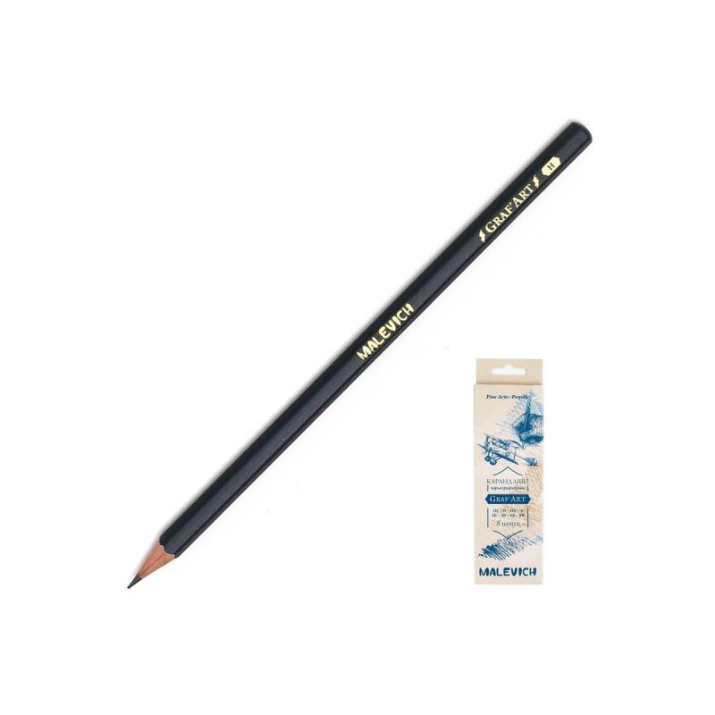 Набор карандашей чернографитных художественных Малевичъ Graf’Art заточенные шестигранные, корпус черный (8 штук).<br /> <br /> Набор чернографитных карандашей Малевичъ Graf’Art включает 8 штук с твёрдостью грифеля: 2Н, Н, НВ, В, 2В, 4В, 6В, 8В. Подходит для профессионального рисования. Карандаши сделаны из высококачественной древесины.<br /> <br /> Карандаши имеют шестигранный профиль и чёрный цвет корпуса. Заточены и готовы к использованию. Отсутствие ластика делает их компактными. Длина корпуса — 177 мм, диаметр — 7 мм. Грифель легко затачивается и не крошится.<br /> <br /> Производятся в Китае. Шестигранный корпус обеспечивает надёжный захват. Ударопрочный грифель проклеен по всей длине корпуса.<br /> <br /> Карандаши подходят для художников и дизайнеров. Высококачественный грифель очищен от примесей, что обеспечивает равномерную штриховку. Диаметр грифеля отличается в зависимости от степени мягкости.