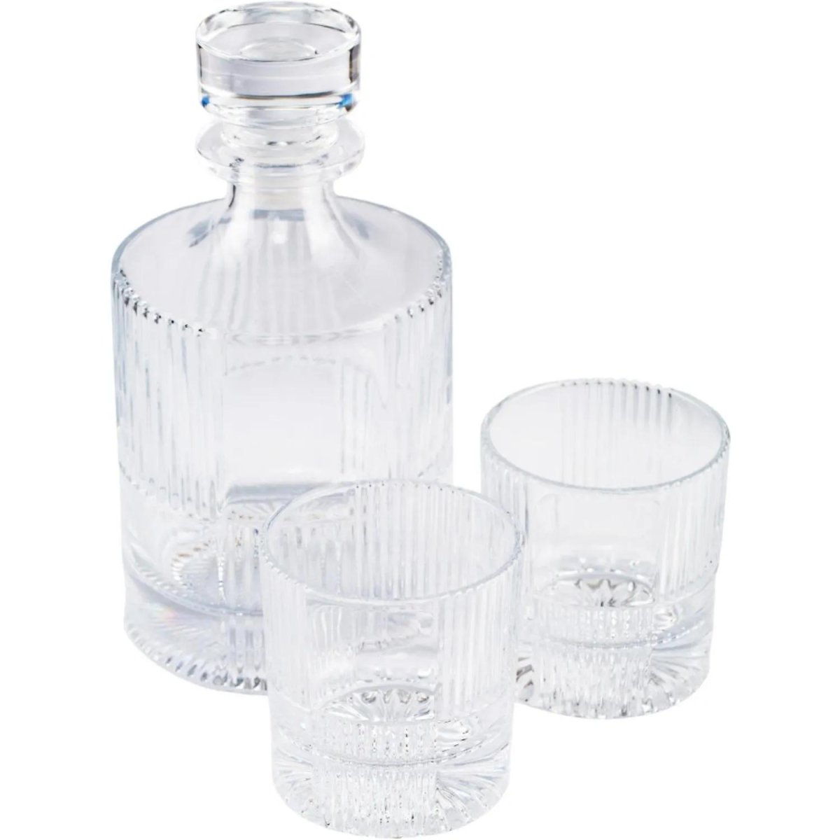 Набор посуды для напитков Glasserie Dandy (штоф 1000 мл, 2 стакана 290 мл) <br><br>В набор входят: <br>— штоф объёмом 1 л; <br>— 2 стакана для виски объёмом 290 мл. <br>Штоф сделан из высококачественного стекла, а стаканы изготовлены из прочного стекла с толстым дном, что обеспечивает устойчивость и долговечность. <br>Преимущества: <br>1. Элегантный дизайн, который станет украшением любого стола.<br>2. Идеально подходит для сервировки напитков на праздниках и семейных торжествах. <br>3. Прочные материалы обеспечивают долговечность и защиту от повреждений. <br>Набор подойдёт в качестве подарка на день рождения, юбилей или другой праздник, а также для создания уютной атмосферы в вашем доме. <br>Выбирая набор Glasserie Dandy, вы получаете не только стильный аксессуар, но и качество, проверенное временем.