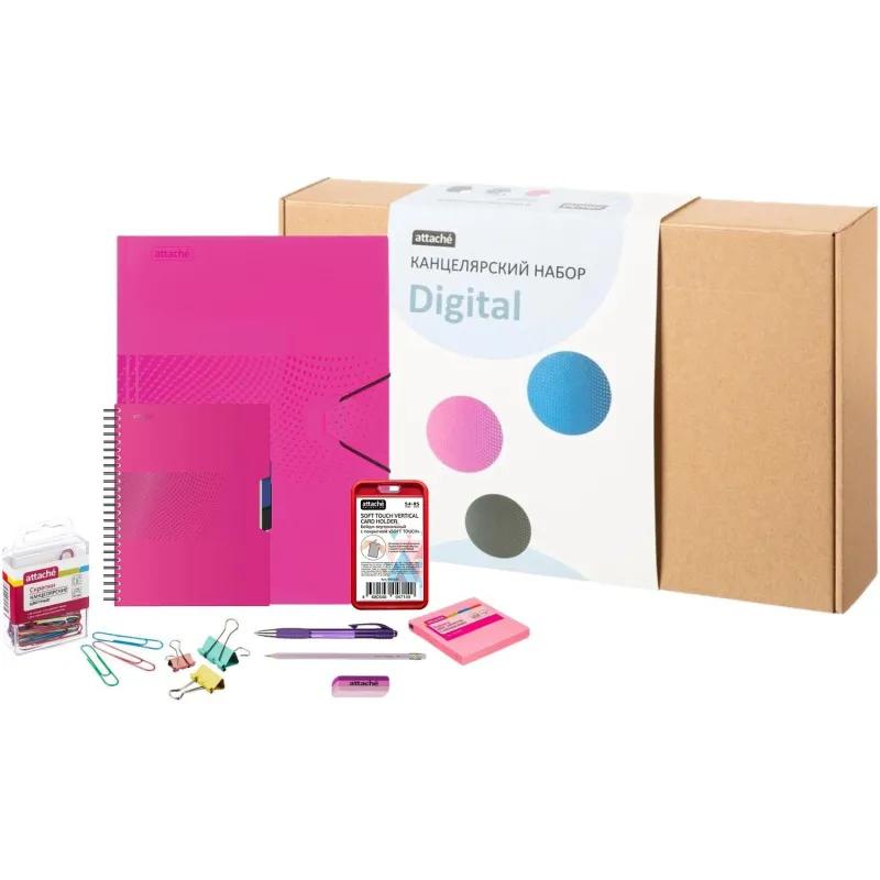 Канцелярский набор Attache Selection Digital станет отличным решением для офисных сотрудников, бизнесменов, врачей, учителей и всех тех, кто ведет важные записи. В него вошли все необходимые принадлежности.<br>Состав набора:<br>— бизнес-тетрадь (для комфортного ведения записей и планирования рабочих процессов);<br>— бейдж;<br>— чернографитный карандаш (обеспечивает мягкое и качественное письмо);<br>— ластик (выполнен из безопасного материала);<br>— папка на завязках (вместительная, сохраняет важные документы и бумаги, помогает организовать порядок);<br>— шариковая ручка (автоматическая, плавное письмо и тонкие линии на бумаге, удобна для подписания договоров);<br>— стикеры;<br>— скрепки;<br>— зажимы для бумаг.<br> Преподнести подобный презент можно на любое важное событие — день рождения, День учителя, профессиональные праздники, Новый год, Восьмое марта и другие.<br> Главным преимуществом канцелярских принадлежностей в наборе Attache Selection Digital выступает их изготовление из качественных и безопасных материалов. Здесь есть все необходимое для учебы, работы или личных записей.<br> С помощью набора можно организовать порядок и хранение документов, важных бумаг, записей. Пользоваться им удобно и комфортно. К тому же все изделия характеризуются долгим сроком службы.<br> Если вы ищете подарок для брата, сестры, мамы, коллеги, начальника, то обратите внимание на канцелярский набор Attache Selection Digital! Он станет удобным и полезным помощником для своего владельца, как на работе, так и дома.