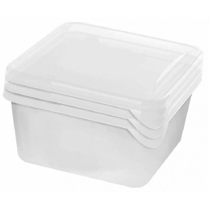 Набор контейнеров Plast Team Frozen пластиковых 3 штуки (750 мл). <BR>Набор контейнеров для заморозки продуктов многофункционален. Отлично подходит для порционного замораживания продуктов в морозильной камере, особенно в сезон заготовок, для повседневного хранения, так и для организации перекуса ''с собой'' ввиду легкости и компактности материала. Контейнеры исполнены в прозрачном цвете, за счет этого всегда видно, что именно находится внутри и сокращается время на поиск нужного продукта. <BR>Тонкий, но в тоже время прочный пластик надежен и прослужит долгие годы. <BR>Контейнеры сохраняют полезную площадь благодаря хорошей штабелируемости.<BR>Крышки плотно прилегают к контейнерам, исключая проникновение посторонних запахов и дольше сохраняя свежесть содержимого. <BR>В комплект входят 3 квадратных контейнера объемом 750 мл с крышками. <BR>Контейнеры можно использовать в <nobr>СВЧ-печи</nobr> и посудомоечной машине. <BR>Размер: 11. 5×11. 5×11 см.