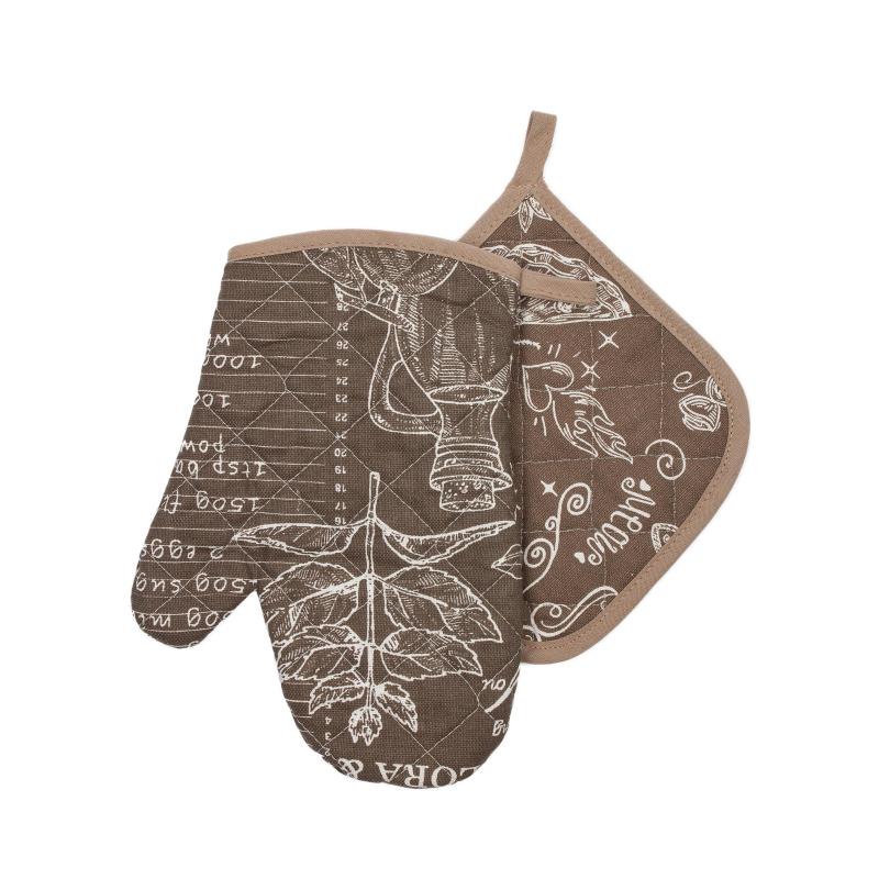 Кухонный набор состоит из прихватки и рукавицы. Классический и ненавязчивый дизайн делает данный набор универсальным для Вашей кухни. Рогожка, из которой выполнены рукавица и прихватка, является полностью натуральной и экологичной тканью, а это значит, что не вызовет аллергии и раздражений. Оптимальная толщина ткани обеспечивает удобство использования и защиту от высоких температур. <BR>Оригинальный дизайн позволяет использовать его в качестве подарка на любой праздник. Кухонный набор из рукавицы и прихватками подходит для повседневного использования на Вашей кухне, не только для удобства, но и создания уюта.