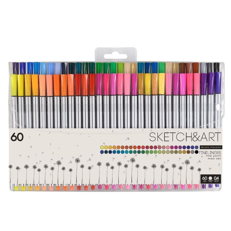 Набор линеров (капиллярных ручек) Sketch&Art 60 цветов толщина линии 0.4 мм<br> <br> Набор из 60 линеров для профессионального и любительского скетчинга. Чернила на водной основе не имеют запаха, легко смываются с рук и отстирываются от ткани. Лёгкое скольжение по бумаге обеспечивает наконечник из синтетического волокна, устойчивого к истиранию.<br> <br> Корпус выполнен из белого пластика и имеет шестигранную форму. Наконечник игольчатой формы изготовлен из фибры, создаёт линию толщиной 0.4 мм. Металлический обжим наконечника позволяет работать с линейками и трафаретами.<br> <br> В комплекте 60 линеров различных цветов. Упаковка — прозрачный пластиковый конверт с европодвесом.