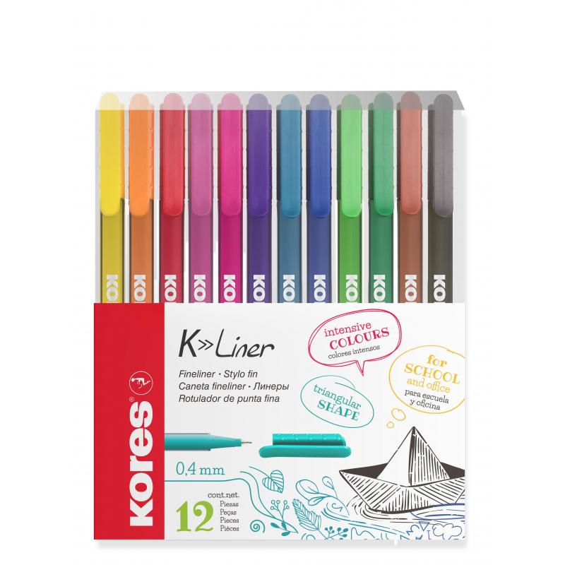 Линеры с тонким наконечником предназначены для письма, черчения и рисования тонких линий. Они удобны при работе с линейкой и трафаретом, что делает их подходящими для точных рисунков и чертежей.<br> <br> Корпус из пластика имеет трёхгранную форму, обеспечивая комфортный захват. Металлический игольчатый наконечник позволяет наносить линии толщиной 0.4 мм. В наборе 12 линеров с разноцветными чернилами, что предоставляет разнообразие для разных творческих задач. Каждый инструмент оснащён вентилируемым колпачком, что повышает безопасность и долговечность.