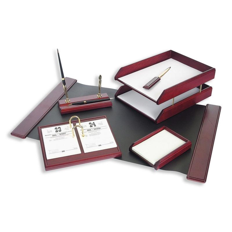 Набор настольный деревянный красное дерево (6 предметов)<br><br>Набор настольный М6С-7А выполнен из красного дерева. Включает 6 предметов. Применяется для организации рабочего пространства на столе. Подходит для офиса и дома.<br><br>Комплектация: двойной лоток для бумаг, бокс для бумаги (блок размером 101×152 мм), нож для вскрытия писем, подставка с шариковыми ручками (2 ручки в комплекте, сменный стержень арт. 869006), подставка для календаря (календарь в комплект не входит) размером 19×24 см, высота подставки 3,7 см, коврик на стол из кожзаменителя размером 66,5×44 см.<br><br>Упакован в картонную коробку. Набор внутри упакован в слюду. Размеры набора (ДxШ): 44×29 см. Подходит для создания комфортного рабочего места. Удобство использования обеспечивает порядок и эстетичность на рабочем столе.