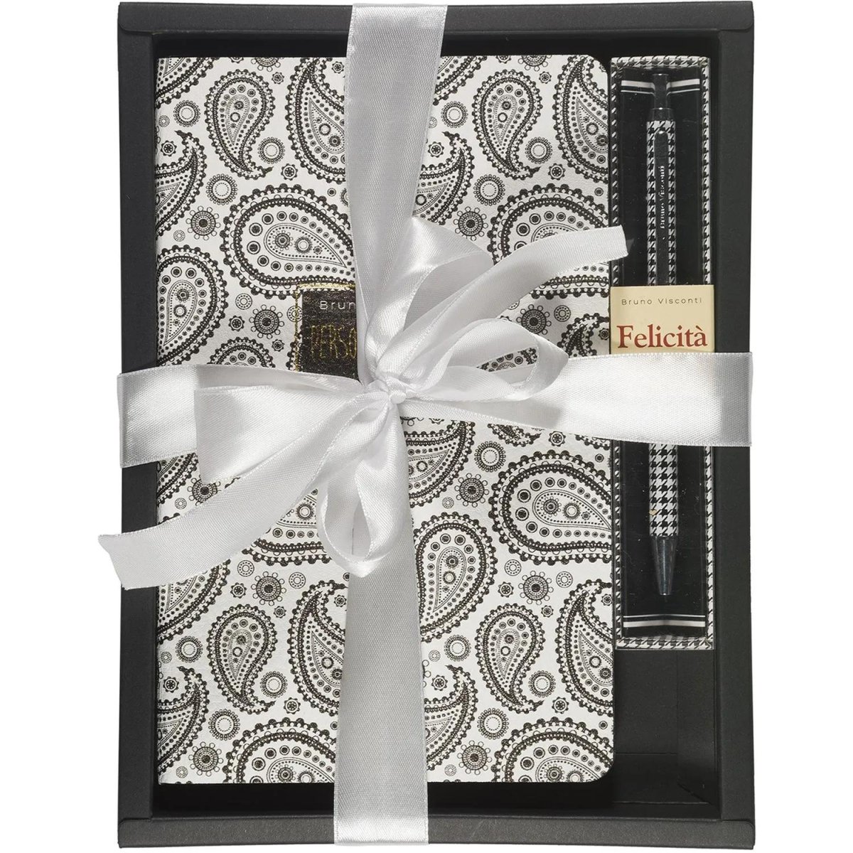 Ежедневник недатированный Bruno Visconti формата A5 предназначен для планирования рабочего времени и ведения записей. Гибкая (Flex) обложка ежедневника изготовлена из искусственной фактурной кожи. Её яркий дизайн, дополненный тиснением золотой фольгой и в сочетании с чёрным обрезом, привлекает внимание, придаёт ежедневнику особую статусность.<br><br>Внутренний блок изготовлен из бежевой бумаги плотностью 80 г/кв.м и содержит 128 листов в серую линейку. Для быстрой навигации предусмотрено ляссе в цвет обреза шириной 6 мм — легко можно найти нужную страницу.<br><br>Ежедневник «Black&White. Восточный мотив» — идеальное решение для динамичных деловых людей, которым важны мобильность, качество, комфорт, а также для креативных людей, стремящихся подчеркнуть свою индивидуальность яркими деловыми аксессуарами.