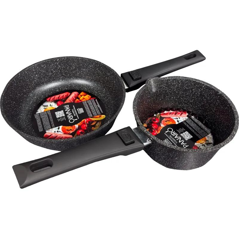 Набор посуды Panairo Soverdo induction — это компактный и функциональный комплект, идеально подходящий для повседневного использования на индукционных, газовых и электрических плитах. В набор входит сковорода диаметром 22 см, которая отлично подходит для жарки небольших порций мяса, рыбы или овощей с минимальным добавлением масла. Ковш объёмом 1,4 литра оснащён удобной съёмной ручкой и станет незаменимым помощником для приготовления соусов, гарниров или разогрева блюд. Все элементы изготовлены из высококачественных материалов (литой алюминий), устойчивых к износу и обеспечивающих равномерный нагрев. Благодаря продуманному дизайну и универсальности, этот набор станет практичным решением для современной кухни, особенно для тех, кто ценит компактность и удобство хранения.<br>Тип упаковки: картонная коробка. <br>Размер упаковки: 30×30×20 см.