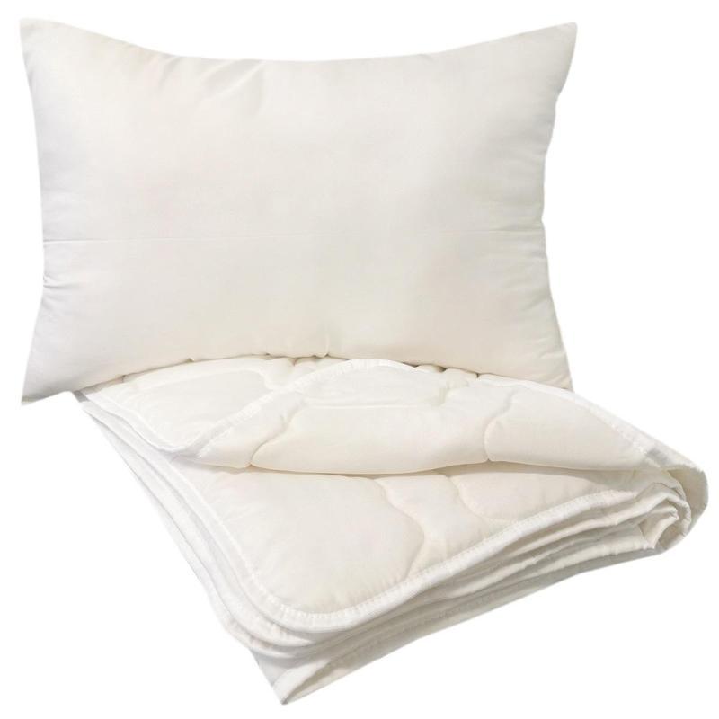 Комплект спальный с всесезонным одеялом и мягкой подушкой. Одеяло легкое, теплое, синтетическое. Не вызывают аллергии и раздражений. Очень практичный набор. Можно использовать в хостелах, общежитиях, бытовках для строителей, в медицинских и детских учреждениях (детские сады, оздоровительные лагеря и др.), а также дома и на даче. Такой набор незаменим при внезапном визите гостей.<BR>Размер: одеяло 140×205 см, подушка 40×60 см.<BR>Наполнитель: 100% полиэфирное волокно плотностью 150 г/кв.м.<BR>Чехол: полиэстер.<BR>Цвет: <nobr>светло-бежевый</nobr>.<BR>Вес: 1300 г.<BR>Упаковка: пакет.