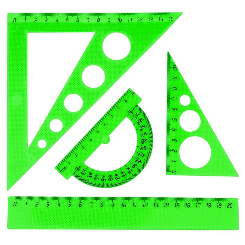 Набор чертёжный № 1 School прозрачный (линейка 20 см, транспортир, 2 треугольника)<br /> <br /> Линейка является незаменимым помощником при чертёжных работах в образовательных учреждениях и офисах, а также дома. Линейка № 1 School 20 см. Выполнена из пластика. Деления наносятся с использованием специальных чернил для оптимальной стойкости. Легко читать: наглядные индикаторы. Цвета в ассортименте. В наборе четыре предмета.