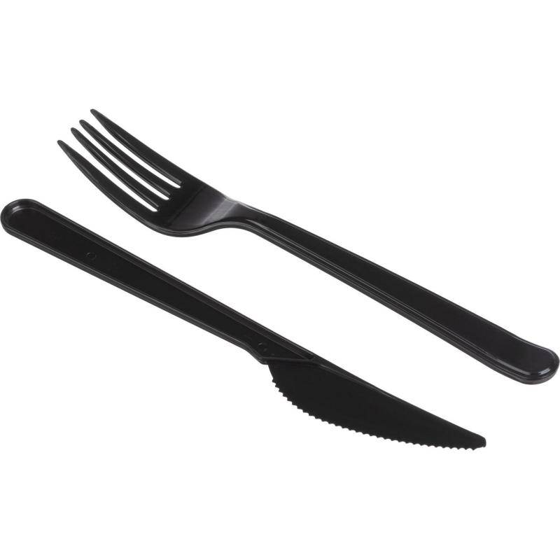 Набор столовых приборов Хорта на 1 персону (3 предмета, 250 наборов в упаковке). <br>Набор столовых приборов удобен для организации питания на выезде и для предприятий общепита, работающих со службами доставки. В набор входит: вилка черная 180 мм, нож черный 180 мм, салфетка бумажная 24×24 см. <br>Приборы изготовлены из первичного пищевого полистирола, салфетка из бумажной основы. Разрешен контакт с холодными и горячими до 75 градусов пищевыми продуктами. Срок годности не ограничен, при соблюдении условий хранения. <br>Каждый набор находится в индивидуальной упаковке с удобной перфорацией для вскрытия пакета. В общей упаковке 250 наборов. <br><br>Внимание! Товар поставляется в транспортном коробе (короба могут отличаться по форме и размеру).