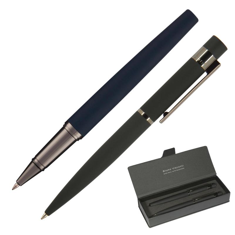Набор в футляре из экокожи, состоящий из двух ручек. Роскошная ручка-роллер с синими чернилами из коллекции «Verona» от «Bruno Visconti».<br><br>Чернила на основе водорастворимого красителя.<br><br>Характерной чертой ручек коллекции «Verona» является увеличенный диаметр корпуса, но и он не вызывает дискомфорт в работе благодаря продуманной эргономичной форме и матовому покрытию. Наоборот, ручка смотрится респектабельно, а глянцевый наконечник и клип-зажим в контрасте с корпусом добавляют ручке нотку элегантности. Поэтому роллер «Verona» — отличный вариант бизнес-подарка и для мужчины, и для женщины! Металлическая шариковая ручка «Verona» — аксессуар, призванный стать настоящим элементом стиля, подчеркнуть индивидуальность его владельца. Шариковая ручка имеет поворотный механизм, роллер имеет колпачок.